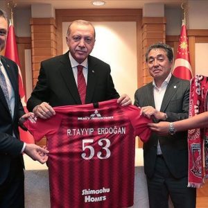 التقى الرئيس التركي رجب طيب أردوغان، الاثنين، مسؤولي فريق كرة القدم الياباني “أوراوا ريد دياموندس”، بالعاصمة طوكيو.