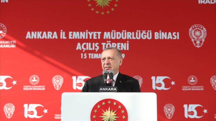 جاء ذلك في كلمة ألقاها الرئيس التركي بافتتاح المبنى الجديد لمديرية أمن العاصمة أنقرة.
