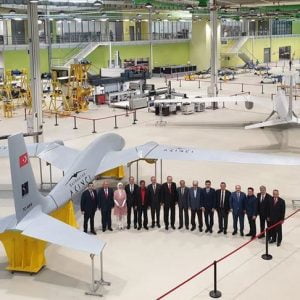 وأجرى الرئيس التركي وضيفه جولة داخل مقر الشركة تفقدا خلالها سير العمل في الشركة التي تعد رائدة في مجال تصنيع الطائرات المسيرة التكتيكية.