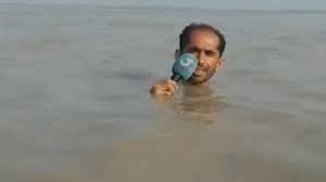 تحوّل مراسل صحفي باكستاني الى ظاهرة على الإنترنت، بعد قيامه بتغطية إخبارية وسط الفيضان بحيث وصلت المياه إلى رقبته .