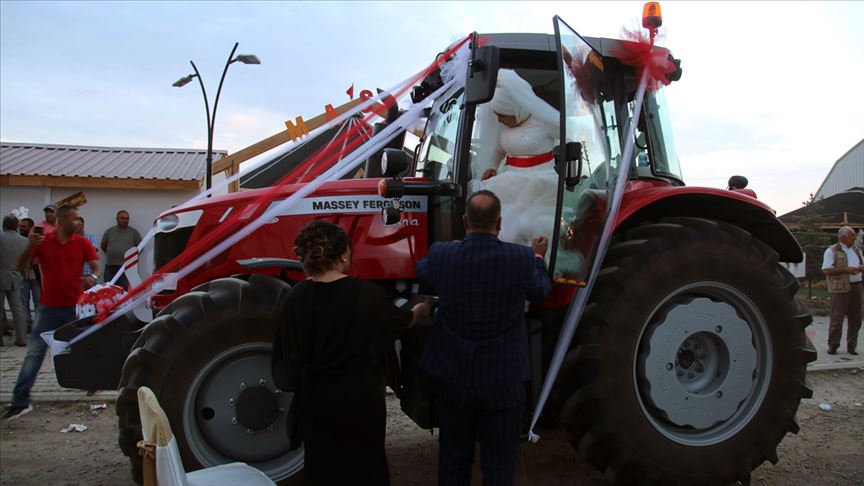 استخدم عريس تركي، في ولاية سيواس وسط البلاد، جرارًا لنقل زوجته من بيت اهلها، بدل سيارة ليموزين، كما جرت العادة في حفلات الزفاف.