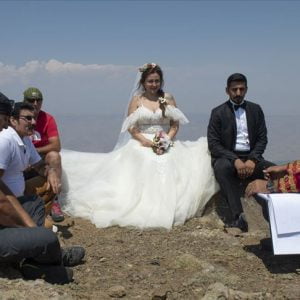 عقد شاب وفتاة قرانهما، على قمة جبل “تيكيلتي” بولاية أغدير شرقي تركيا، بارتفاع 2550 مترا عن سطح البحر.