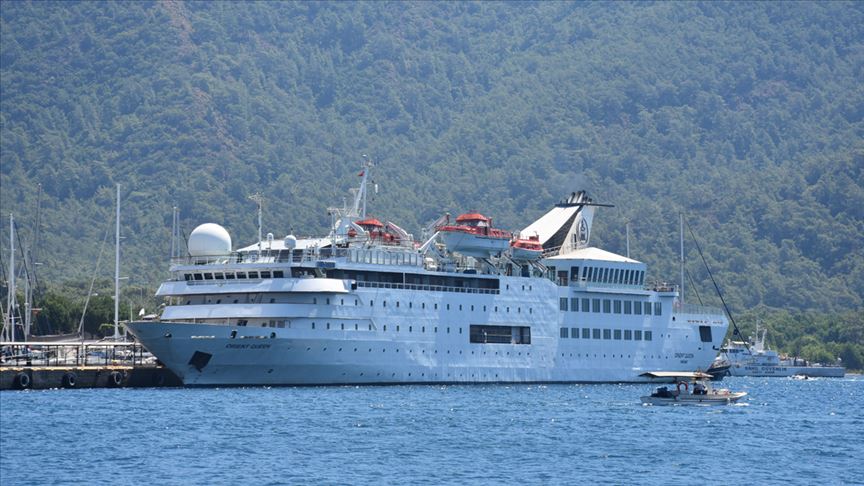 وصلت السفينة السياحية “أورينت كوين”، الجمعة، التي تجري جولة سياحية في البحر المتوسط إلى ميناء مرمريس، بولاية موغلا، غربي تركيا.