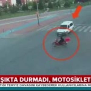 وبحسب موقع صحيفة صباح، فإن سائق شاحنة صغيرة لم يتوقف على اشارة المرور الحمراء واستمر بعبور الطريق مسرعاً فأدى ذلك لصدم دراجة نارية بشكل مباشر.