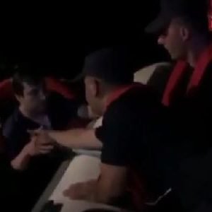 وقد سجلت كاميرة هذه اللحظات وكيف استطاع رجال خفر السواحل انقاذه.
