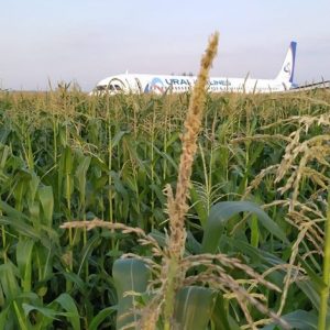وتسبب الاصطدام بتعطل عمل محركي الطائرة، ما استدعى هبوطها في حقل ذرة قريب من مطار جوكوفيسكي الذي أقلعت منه، الأمر الذي أدى لإصابة 23 شخصا بجروح بين متوسطة وطفيفة.