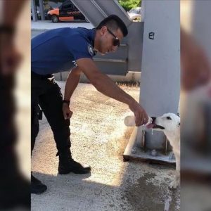 وذكر مراسل الأناضول، أن مراد كوناي، نائب آمر قسم شرطة “قوملوجه” في أنطاليا، قدّم مياه شرب كانت يحملها لأحد الكلاب المتشردة في مشهد مؤثر.