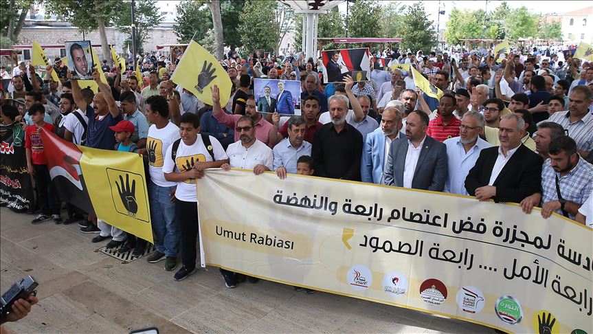 نظمت عدة قوى سياسية مصرية وقفة في إسطنبول، الجمعة، لإحياء الذكرى السادسة لفض اعتصامي ميداني “رابعة العدوية” و”النهضة” بالقاهرة الكبرى؛ ما أدى إلى إزهاق أرواح مئات المعتصمين.