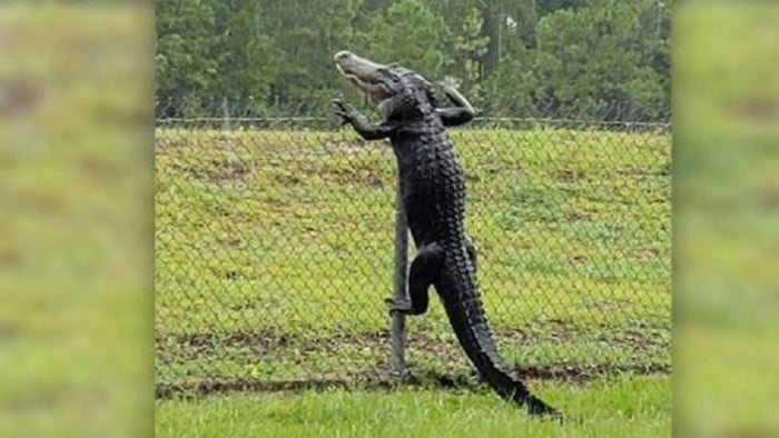 صورت شاهدة عيان أمريكية فيديو غريبا لتمساح تسلق سورا معدنيا عاليا برشاقة وقفز إلى الجانب الآخر ليدخل قاعدة عسكرية مغلقة.