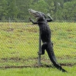 صورت شاهدة عيان أمريكية فيديو غريبا لتمساح تسلق سورا معدنيا عاليا برشاقة وقفز إلى الجانب الآخر ليدخل قاعدة عسكرية مغلقة.