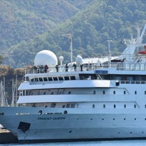 وصلت سفينة الرحلات السياحية الضخمة “أورينت كوين” إلى مدينة مرمريس بولاية موغلا غربي تركيا قادمة من جزيرة “سانتوريني” اليونانية.