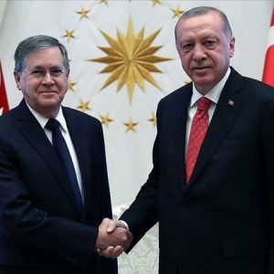 وتسلّم الرئيس التركي رجب طيب أردوغان، أوراق اعتماد السفير الأمريكي الجديد لدى أنقرة ديفيد مايكل ساترفيلد، الأربعاء، في المجمع الرئاسي التركي بالعاصمة أنقرة.