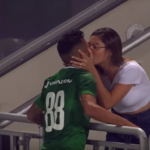 الموقف الطريف حصل في الدقيقة 75 من اللقاء، عندما أحرز البرازيلي هدفا لفريقه، ليركض اتجاه المدرجات لمشاركة زوجته بتسجيله للهدف وتقبيلها.