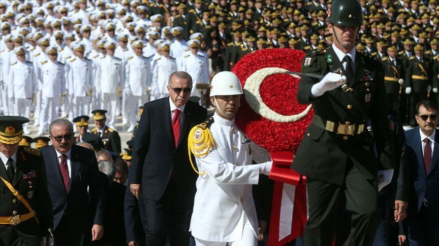 وبدأت فعاليات “عيد النصر والقوات المسلحة” بزيارة إلى ضريح مؤسس الجمهورية “مصطفى كمال أتاتورك” وسط أنقرة أجراها وفد رسمي يتقدمه الرئيس رجب طيب أردوغان.