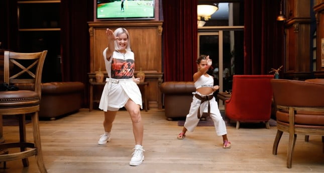قدمت المطربة، وكاتبة الأغاني الإنجليزية، آن ماري، عرضا “كاراتيه” قصيرا، مع طفلة تركية خلال زيارتها ولاية أنطاليا التركية.