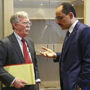 أجرى المتحدث باسم الرئاسة التركية ابراهيم قالن، محادثات هاتفية مع مستشار الأمن القومي الأمريكي جون بولتون، شملت العلاقات بين الولايات المتحدة وتركيا، والتطورات الإقليمية.