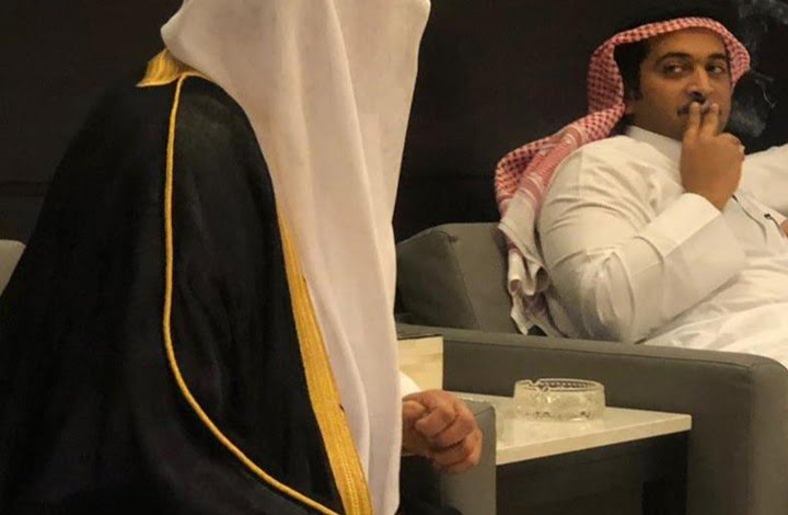الفيديو الذي قال ناشطون إنه التقط في قاعة انتظار خاصة، بمطار الملكة علياء في الأردن، يظهر الأمير خالد متحدثا إلى خليفة بن أحمد آل ثاني، قبل أن يقوم بإعطائه سيجارة، وإشعالها له.