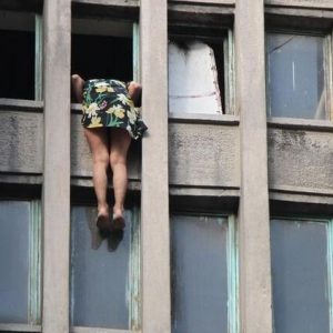 وخلال ساعة كاملة بينما كان الجميع يعيش لحظات خوف وهلع أسفل المبنى كانت الشابة البالغة من العمر 28 عاماً تحاول القفز، بل إنها نزلت من نافذة الدور الخامس إلى الرابع.