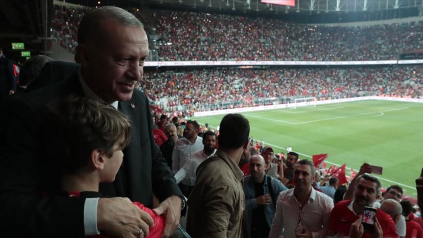 هنأ الرئيس رجب طيب أردوغان، السبت، لاعبي المنتخب التركي بفوزه على منافسه أندورا في التصفيات المؤهلة إلى بطولة كأس الأمم الأوروبية لكرة القدم (يورو 2020).