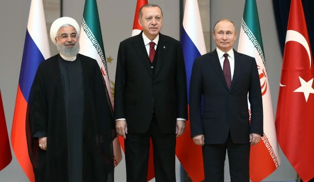 أعلن المتحدث الصحفي باسم الرئاسة الروسية، دميتري بيسكوف، أن الرئيس الروسي يعقد اجتماعين مع الرئيسين التركي والإيراني في إطار القمة الثلاثية حول سوريا.
