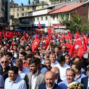 وردد المحتجون هتافات ضد منظمة “بي كا كا” الإرهابية، مؤكدين أن أعمالها لن تزيد الشعب التركي إلا تكاتفا وتعاضدا بوجه الإرهاب.