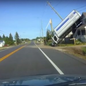 شهدت مقاطعة أونتاريو الكندية، حادثا مذهلا، رصدته عدسات الكاميرات، لشاحنة ضخمة تقفز فوق سطح منزل.