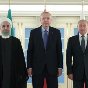 ووفقا لوكالة “الأناضول” التركية، فقد تبادل الزعماء أطراف الحديث في قصر جانقايا بأنقرة، عقب القمة الثلاثية حول سوريا.