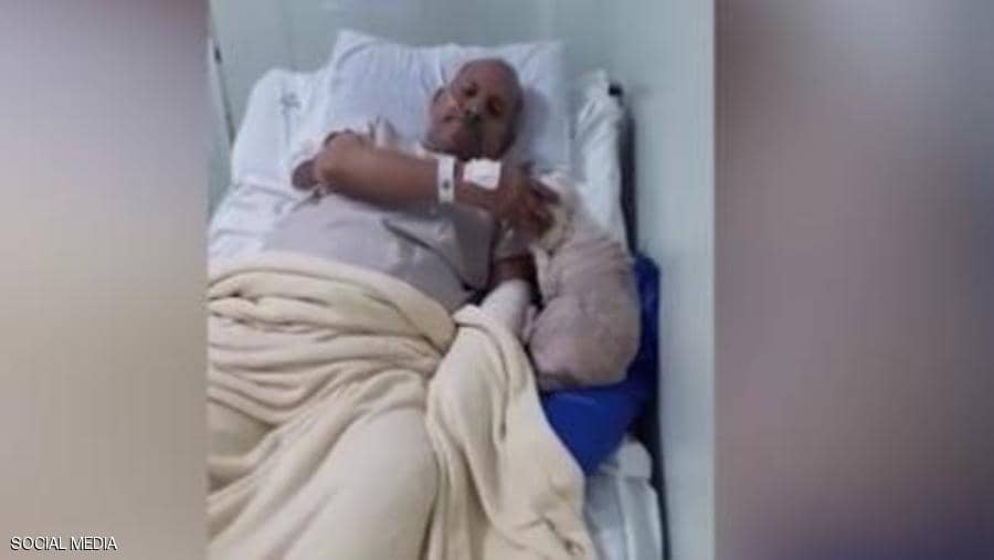 وبدا أن الكلبة تفتقد صاحبها كثيرا، إذ داعبها لفترة من الوقت وهو مستلق على فراش المستشفى.