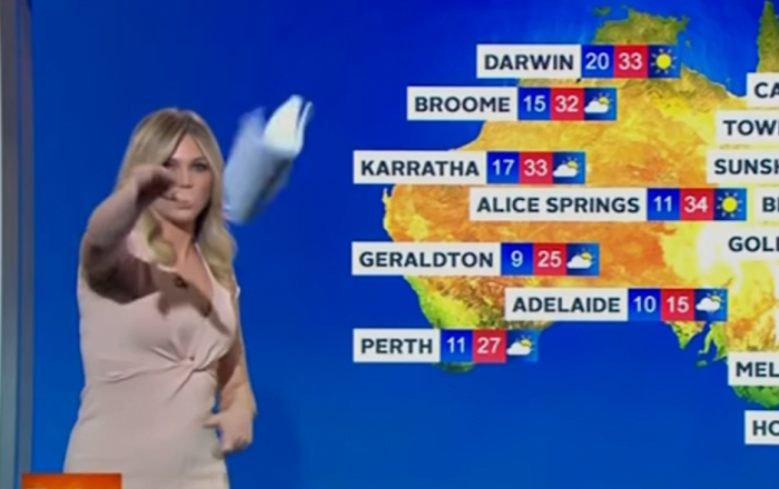 ذكرت قناة TeleNews على موقع “يوتيوب” أن مذيعة النشرة الجوية لارا فيلا، غادرت الاستوديو فجأة بعد أن ألقت ما بيدها من أوراق لتركض بشكل غريب أمام الكاميرات.