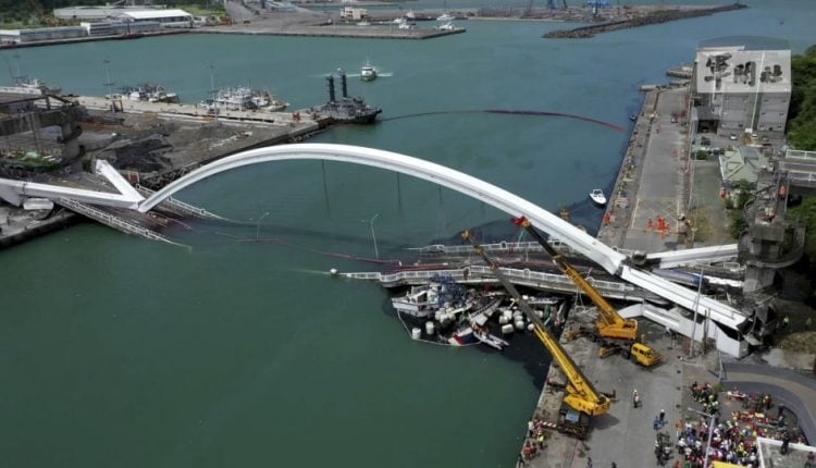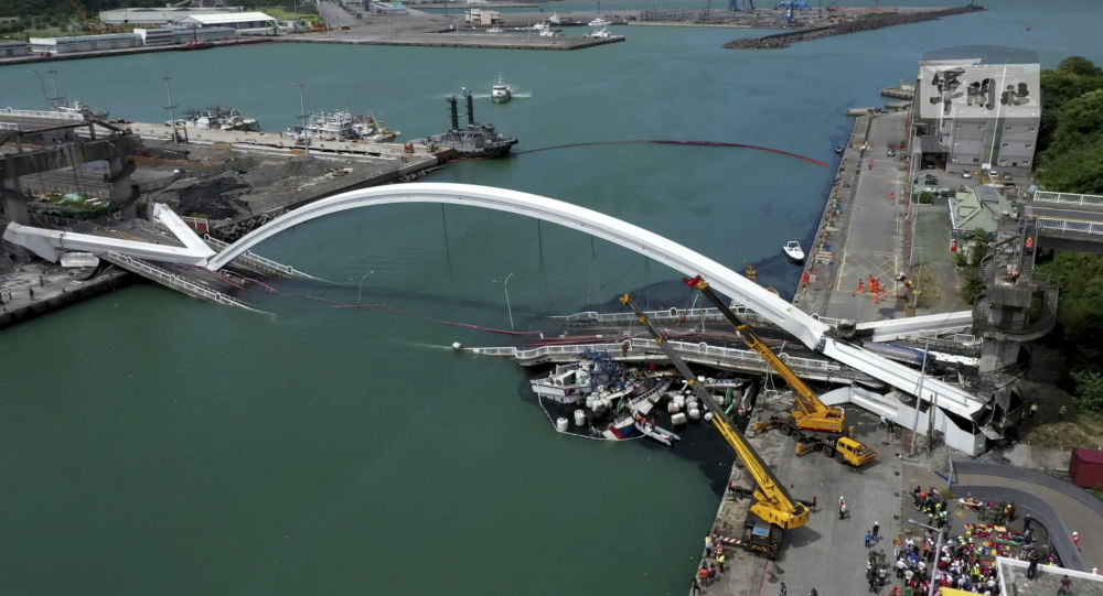 انهار جسر معلق شاهق الارتفاع أعلى خليج تايوان، اليوم الثلاثاء، ليسقط فوق قوارب كانت تبحر أسفله.