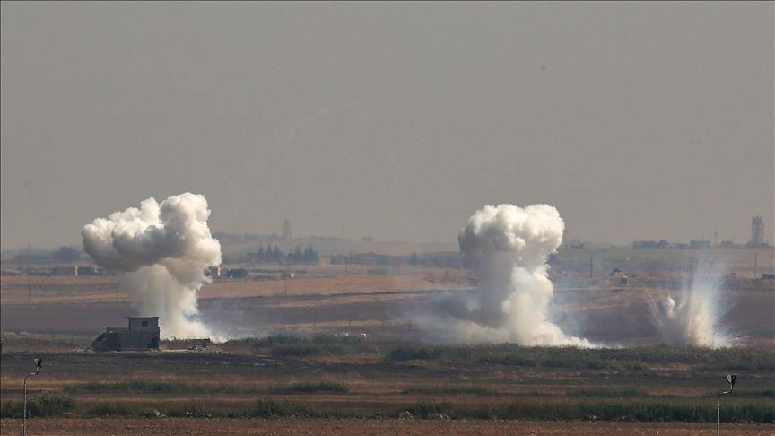 تصاعدت أعمدة الدخان من ريفي مدينتي تل أبيض ورأس العين عقب قصف الأهداف الإرهابية فيهما بالمدفعية التركية، في إطار عملية نبع السلام، شمالي سوريا.