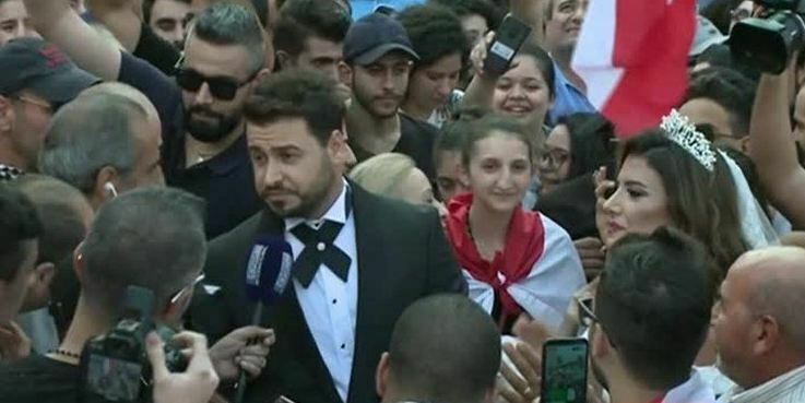 رغم الاحتجاجات التي تعمّ البلاد لليوم الثالث على التوالي، احتفل الثنائي مجد العنداري وعقيلته داليا بزفافهما مع المتظاهرين في منطقة عاليه.