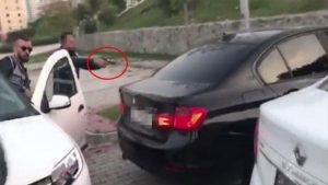 ونشرت الصحيفة التركية مقطعاً مصوراً من داخل سيارة شرطة يُظهر تعقّب العناصر الأمنية لسيارة المشتبه به، وإيقافها خلال محاولته دخول المجمع.