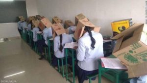 أثارت إحدى الكليات الخاصة في ولاية كارناتاكا الهندية جدلا واسعا على مواقع التواصل الاجتماعي، بعد ظهور الطلاب أثناء أدائهم لامتحان الكيمياء وهم يرتدون على رؤوسهم صناديق من الورق المقوى.