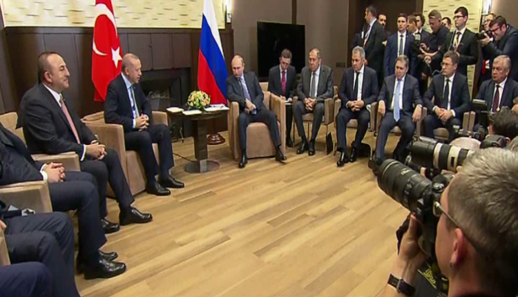 بدوره أعرب أردوغان عن أمله في التوصل اليوم إلى اتفاق  بما يكون به مفيد لطلا الطرفين، “أشكر الرئيس بوتين … وأعتقد أن هذا اللقاء سيكون مفيد لبلدينا ولمصالح بلدينا، وهذا اللقاء سيساهم في تعزيز العلاقات والاتصالات بيينا وأعتقد اننا سنتمكن من التوصل إلى اتفاق اليوم .. هذا اللقاء سيمكننا من البحث بالتفاصيل لجميع المسائل التي نواجهها ونحن سنواصل عملية نبع السلام”.