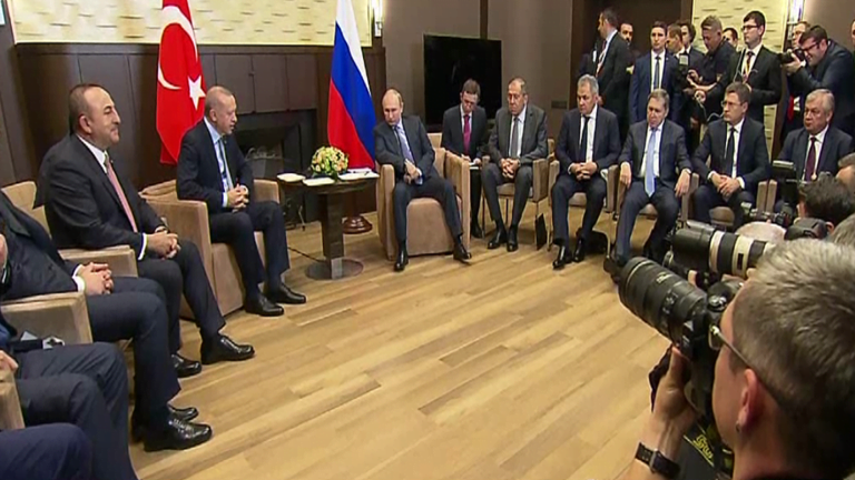 وأضاف الرئيس الروسي خلال لقائه نظيره التركي اليوم الثلاثاء: “الوضع في المنطقة عصيب للغاية، ونحن نرى ونفهم كل شيء، وأعتقد أن لقائنا اليوم في مكانه، ومشاوراتنا مطلوبة بشدة”​​​.