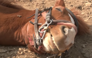 وحسب صحيفة “الديلي ميل” البريطانية، يزعم الحصان “جينجا” أنه ميت، حتى لا يركبه أحد.