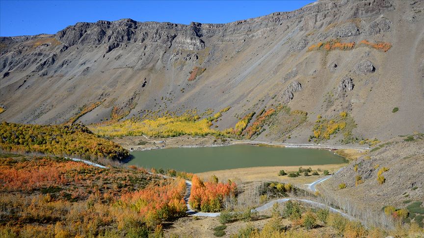 مع حلول الخريف تزينت بحيرة “نمرود” البركانية، في ولاية بتليس، شرقي تركيا، بمزيج ساحر من الألوان.