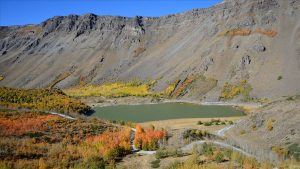 مع حلول الخريف تزينت بحيرة “نمرود” البركانية، في ولاية بتليس، شرقي تركيا، بمزيج ساحر من الألوان.