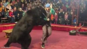 خرج دب عن السيطرة خلال عرض للسيرك، فانقض على مدربه بشكل مفاجئ أمام أعين الحضور، في مشهد خطير ونادر نقلته وسائل إعلام محلية.