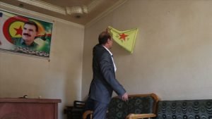 وعقب دخوله منزله، تفاجأ “رمانة” بتعليق عناصر التنظيم أعلام “ي ب ك”، وصوراً لزعيم منظمة “بي كا كا” الإرهابية، عبد الله أوجلان، على جدران المنزل.