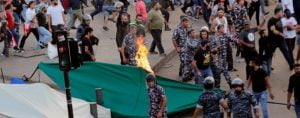 وكان مجموعة من أنصار حزب الله وحركة أمل، هاجموا ظهرا متظاهرين، وقاموا بتخريب خيمهم، عند أحد الحواجز على طريق رئيسي في بيروت.