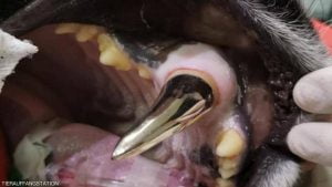 وقال الجراحون إن زراعة الناب الذهبي وتثبيته، كانت ضرورية لوقف معاناة الحيوان الضاري أثناء تناول الطعام.