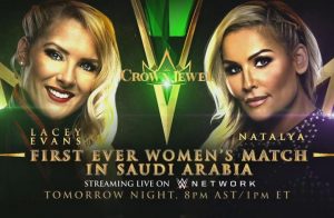 وأضافت أن مباراة نجمتيها نتاليا ولايسي إيفانز ستكون داخل استاد الملك فهد، في أول عرض مصارعة نسائية في المملكة الخليجية.