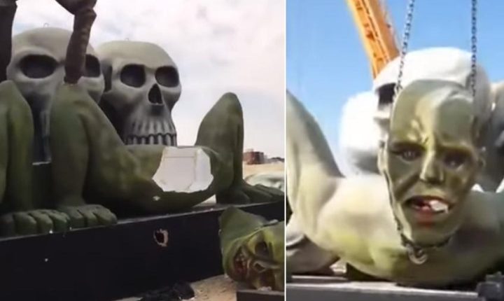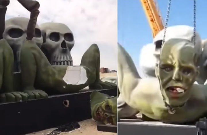 حطم مواطنون سعوديون، مجسمات كبيرة لمخلوقات “شيطانية” في العاصمة الرياض، كانت معروضة في إطار مهرجان “موسم الرياض” بحسب ما نقلت “فرانس 24”.