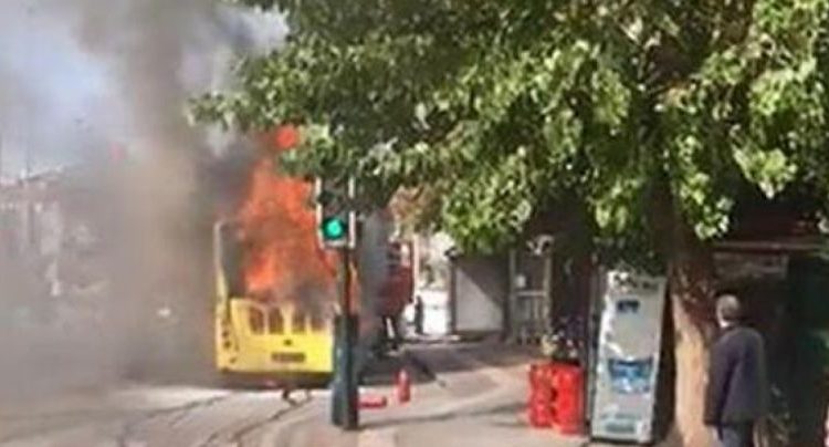 احترقت مركبة عامة تابعة لبلدية بورصة بشكل كامل ظهر اليوم الأربعاء.