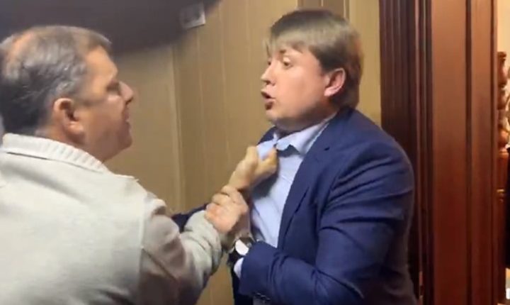 وتداول ناشطون فيديو يظهر رئيس لجنة شؤون الطاقة في البرلمان الأوكراني (الرادا)، أندريه غيروس، في شجار مع زعيم الحزب الراديكالي القومي المتشدد، أوليغ لياشكو.