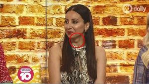 وخلال متابعة لقاء تلفزيوني لمراسلة الشبكة العاشرة الأسترالية برفقة أحد الضيوف، رصدت ويندي مكوي، وهي من ويريبي بولاية فيكتوريا الأسترالية، كتلة بارزة في رقبة المذيعة أثارت قلقها.