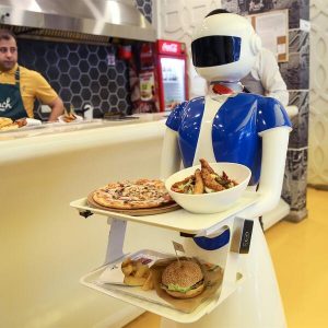 أقدم صاحب مطعم “توش” للوجبات السريعة في منطقة أتاكوي بمدينة اسطنبول على استخدام روبوتات لتقديم الطعام والشراب للزبائن .