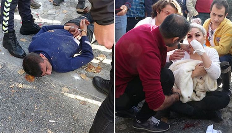 سقطت السيدة على الأرض على إثر الضربات التي تلقتها وكانت تغمرها الدماء، بينما قام المارة الذين كانوا شهودا على الحادثة بمهاجته وأحكموا قبضتهم عليه
